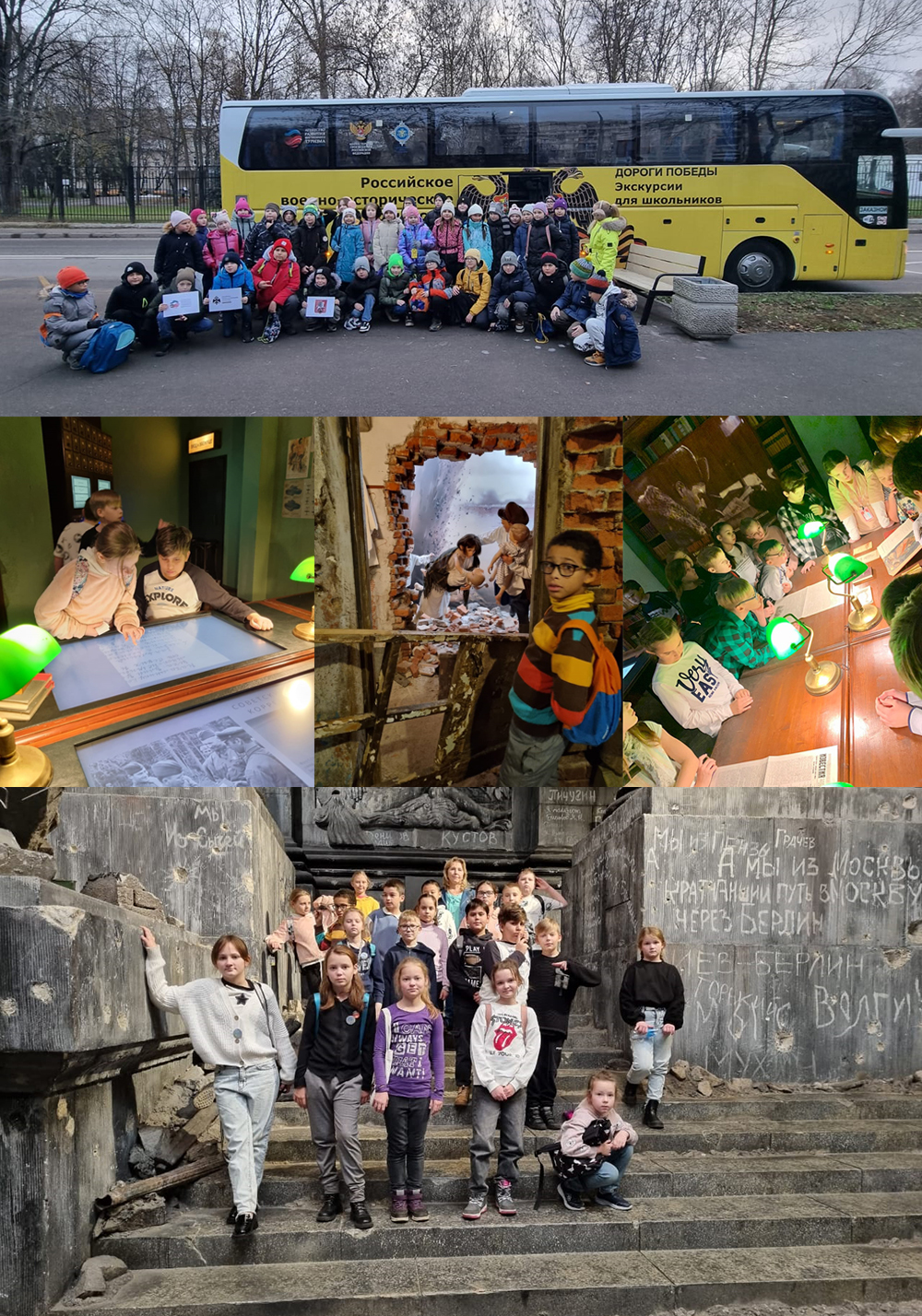 13 ноября ученики 4"Б" класса с классным руководителем Коломийчук Светланой Дмитриевной в рамках Всероссийской военно- патриотической программы "Дороги Победы" посетили музей Победы на Поклонной горе. Тема экскурсии - "Подвиг народа". На 1,5 часа ребята погрузились в тяжелую атмосферу первых военных дней, вместе прошли по Брестской крепости, ощутили себя жителями оккупированной деревни, побывали на вокзале и в библиотеке военного времени, послушали Ю.Левитана и И.Сталина. Хочется отметить отличную организацию мероприятия и работу гидов . Всё дети ушли под глубоким впечатлением от прикосновения к самим трудным страницам истории нашей страны.