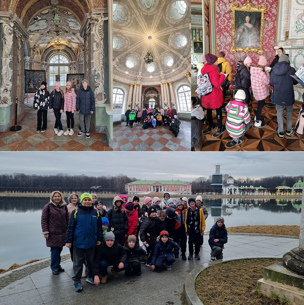 Перед каникулами ученики 4 «Б» класса с классным руководителем Коломийчук Светланой Дмитриевной побывали в усадьбе Кусково. Дети прошли квест по резиденции графов Шереметевых, во время которого познакомились с бытом загородного дворца, сохранившимися предметами старины и коллекцией портретов.